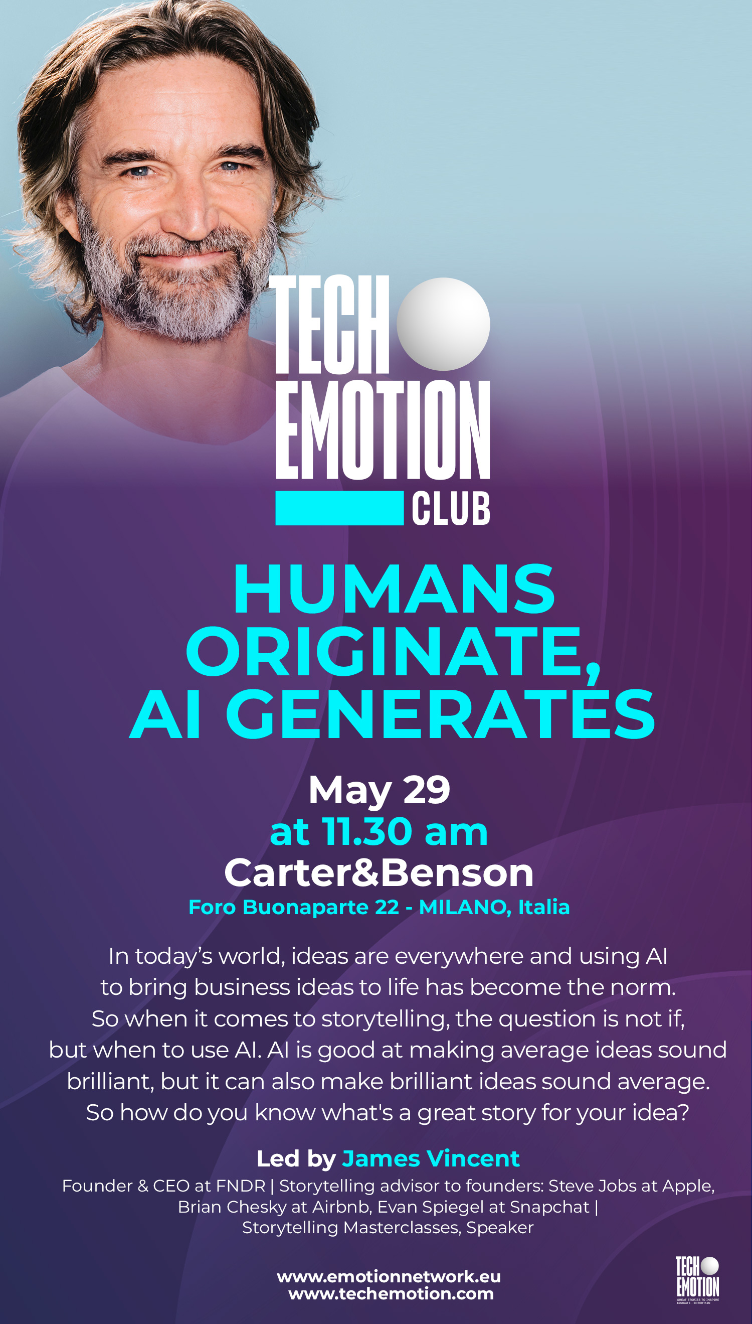 James Vincent, founder and CEO of FNDR, is renowned for his storytelling skills.